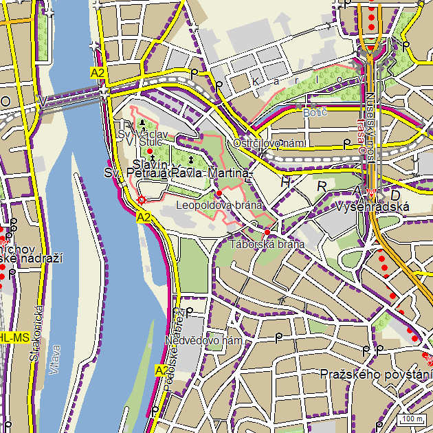 Detail of map Praha - jih
